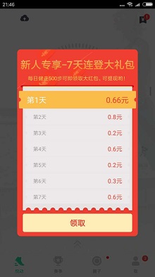 2.新人连续登录7天都有红包,每日走500步,完成各种任务都会有一些红包,这个红包,包括悦币兑换的红包,最低都是10元起提现。