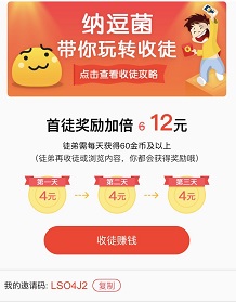 输入手机号,可免费领取6.66元红包,最低18元起提现,首次邀请一个好友奖励12元,但是需要好友每天获得60金币(很容易达到)