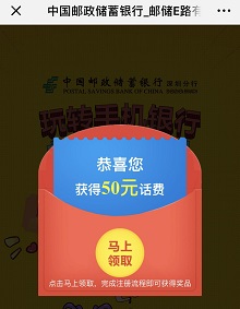 人人都可以免费领取50元话费,记得下载手机银行开户,10个工作日内到账。(没卡的也可以输入自己的手机号感受下,看是不是中50元)