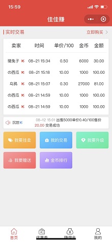 3.看大部分挂单的价格,有人是乱挂的,正常应该是100金币=0.3元,最低1000金币即可卖出,最低1元即可直接提现到微信!
