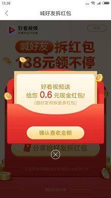 2.进入后,没安装好看视频的先下载app,已安装的会自动跳转进入拆红包页面。