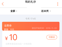 4.在“我的”-“我的礼包”可以看到,11月2日后才能激活兑换10元话费。