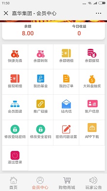 2.注册为会员,在“会员中心”可看到余额有8元,如果没有可能就是结束了。