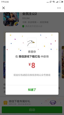 2.这种说明你有资格,直接下载游戏,并用微信登录,再返回这个页面免费领取8元红包。