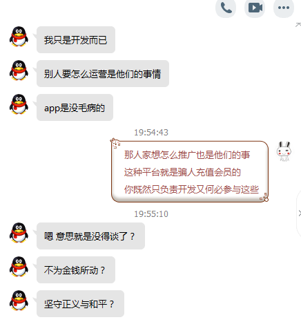 尤其是最后几句“不为金钱所动?”、“坚守正义与和平?”,我也懒得再纠缠下去,因为我怕扛不住压力,被金钱俘虏,无法维护世界和平......