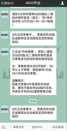 1.手机版,点击菜单栏“寄售专区”-“Q币寄售”按提示出售。(注意:由于是授权异地登录,未绑定手机的QQ,可能会被临时冻结!)