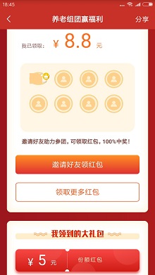 每邀请一个好友给自己助力,额外有1.2元红包奖励。