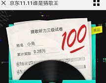 微信扫码进入参与在线pk,10道题,猜歌名和歌手的,每天可重复完,答对有机会抽到现金红包,亲测0.28元,到账京东小金库!