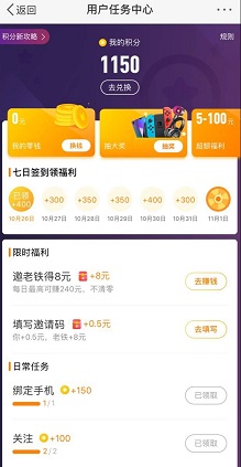 4.每天完成后,可以凑到1000积分以上,价值1元现金左右。最低3元即可提现到支付宝!