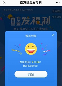输入在南方基金开户的手机号,亲测领到0.66元。
