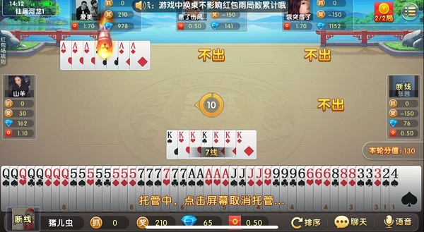 先免费领取0.5元,下载app,微信登录,在“个人红包场”-“仙居河龙”进入,打法和ddz一样,不过这牌有点骚,如图: