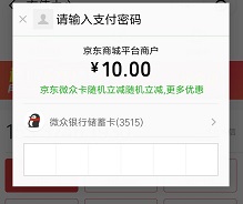 微信搜索小程序“京东购物”-“充值中心”充话费,支付时选择微众卡,看到有如下图优惠就可以参与。