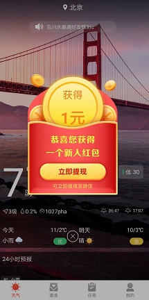 登录后,在首页可免费领取1元,直接提现。