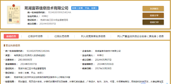 下面来给大家详细介绍下.聚聚玩平台正式运营时间是2016年,至今也有2年多的时间了,比一些老平台是晚了点,但目前有点后来居上的势头,表现还是不错的。聚聚玩是由芜湖富蓉信息技术有限公司运营的,可以看到是一家正规的注册公司,大家可以放心试玩!