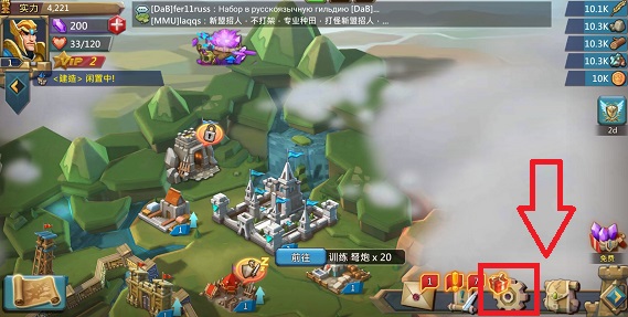 2.点击推送来的“马上领取”或者菜单栏“活动大厅”进入,找到“王国纪元”任务,按要求下载游戏,并填写帐号ID和上传指定截图。(这个游戏的设置在右下角,如图所示)