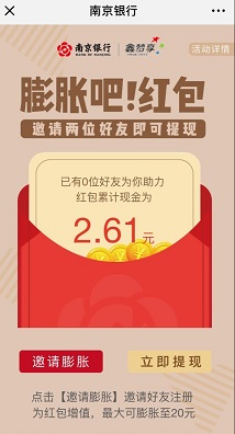 标签:免费领取 微信 红包 南京银行 鑫梦享