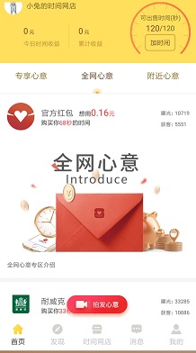2.微信登录后,会赠送120秒可售时间,意思是每天能看120秒的广告,点击“加时间”随便发布一个“时间网店”再设置三个分店,就有360秒了。