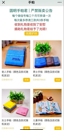 刚在同行那看到一个比较有意思的活动,圆明千城万店是赣州虔诚良品纸业有限公司旗下的店铺,当前官方公众号做了一个免费领取手帕的活动,包邮送到家,已经有多个小伙伴反馈收到货了,无任何其他套路!