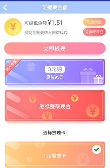 2.直接用微信登录,在“我的”-“任务中心”可以看到你抽到红包金额,我反正只抽到1.51元,还送了一张1元提现卡,
