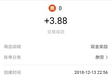 3.成功后,若出现如上图所示,则说明你得到了奖励,直接到账支付宝余额,一般都是3.88元!