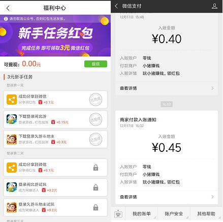 2.微信登录,直接免费领取0.3元,然后进入新手任务红包福利中心,建议把第一天的任务都完成下,一起提现,秒到微信零钱!