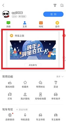 打开百度地图app,点击左上角头像进入个人中心页面,如下图找到“寻宝之旅”活动进入,