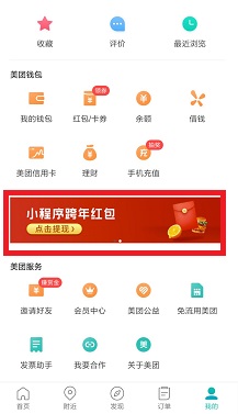 打开美团app,登录后,我的“小程序跨年红包”如下图