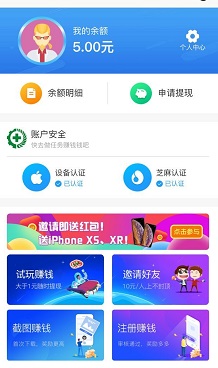 邀请好友有5元奖励,每完成一个任务再得1元提成!