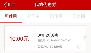 2.注册为会员,在“账户”-“优惠券”可以看到有10元话费券。(如果没就是结束了)
