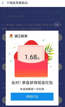 这个是浙江税务搞的活动,所有题目也是和纳税有关,不知道的自己蒙或者百度一下,可以重复答题!