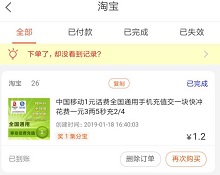 2.直接用微信登录,绑定手机号,在首页可以看到“首单立领5元”的活动,搜索“话费”我是找的一家1元话费的淘宝店铺,直接下单,并完成评价,然后在“我的”-“我的订单”可看到: