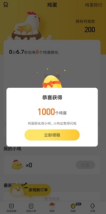 2.点击“鸡蛋”可再免费领取1000鸡蛋。