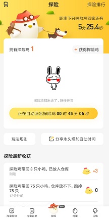 4.点击“探险”可免费领取一只探险鸡,它可以自动偷别人的鸡,偷到后,记得及时卖掉。