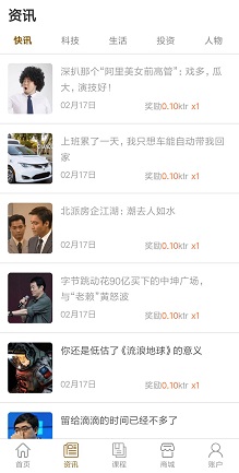 2.登录后,在“资讯”每篇文章打开有19秒倒计时,完成后可得到0.1ktr,每天可以看10篇。