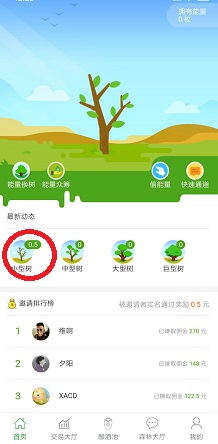 登录后,在“我的”-“个人设置”完成实名认证,不用上传,免费获赠一颗小型树,日产0.5能量。