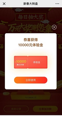 注册为“小哥出行”的会员,3次抽奖机会,其中一次可抽到10000元体验金,使用后,可产生2.19元利息。