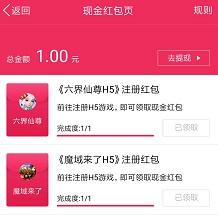 点击“领现金”有2个游戏,进入后返回各领0.5元