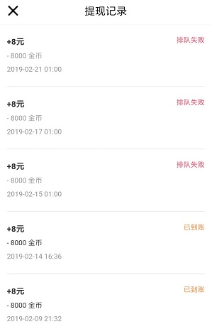 自从2月9日第一次提现到账后,由于每天限制最多只能提现8元,其实我第二天就进行了提现,可直到2月14日情人节那天,官方看我可怜,缺钱过节,才施舍8元,从那之后提现都是失败!