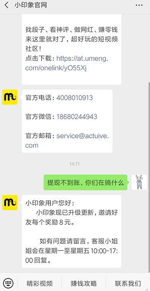 后来在消息记录和官方公众号,查到客服也就一个微信号,连续几天添加都没有回应,打电话也一直无法接通。