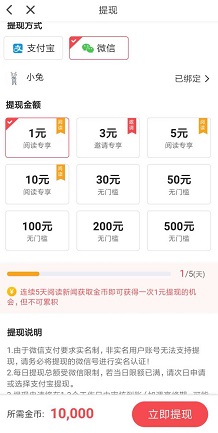 关于首次之后提现门槛,30元及以后无门槛,1-10元需要完成一些连续5-24天阅读任务:
