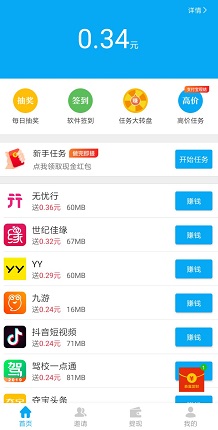 3.每天签到+抽奖+大转盘都可以搞到0.3元左右,每下载一个app单价0.24元以上。