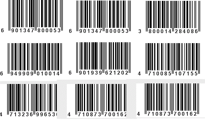 很多人可能要问了,我去哪扫这么多码,我身边又没饮料。没关系,因为我已经找到9种饮料的条形码,并列了出来,如下图: