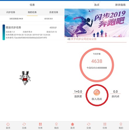 3.在“任务”-“我的任务”可看到有了“赠送闪步任务”,每天走4000步即可获得0.4闪点。