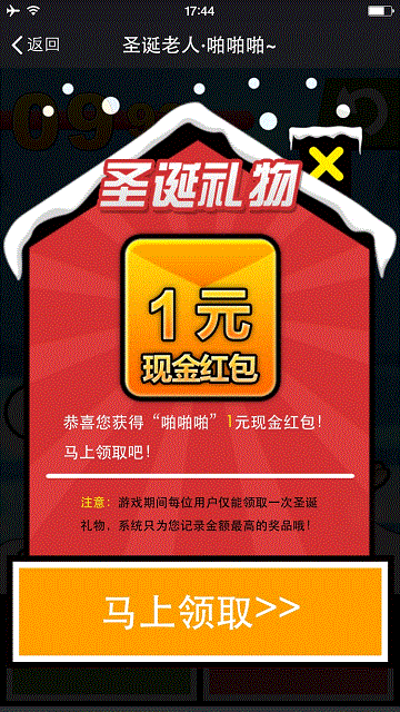 进入后,按提示完成一个小游戏,即可获得1元以上的红包,有5次机会可以玩游戏,可取成绩最好的一次领取。