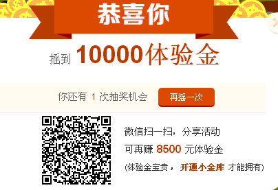 按提示用你的微信扫一扫可以多获得一些体验金,新用户还可以根据提示安装京东金融的app,据说可以再送10000元体验金!