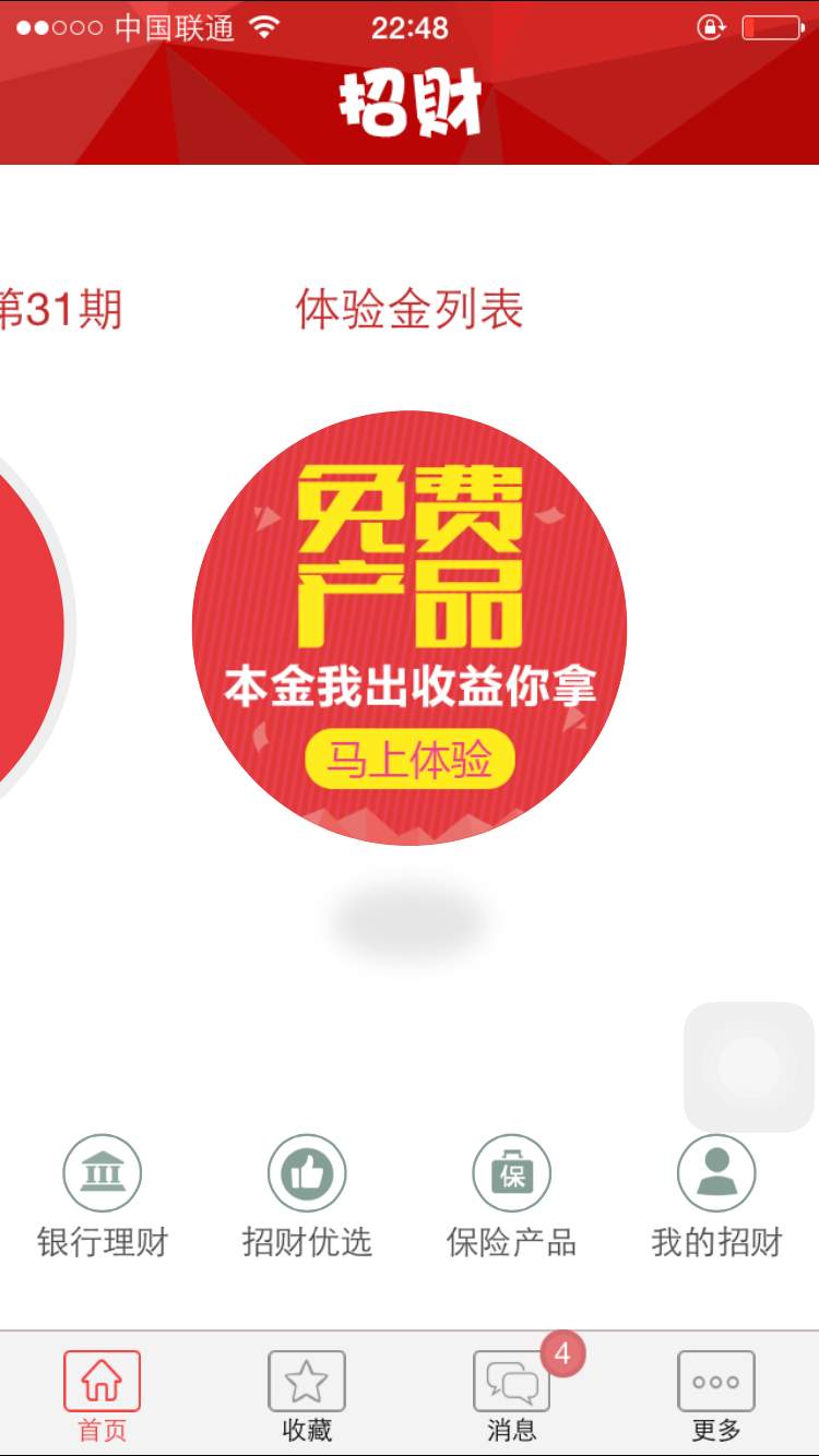 3.领取后,在“首页”手指在屏幕上向左滑动到最后面,可以看到投资体验标的列表,如下图: