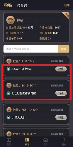 先点击“兑入”,把粉钻转到交易平台后,就可以和之前一样出售了!