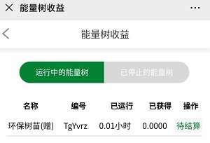 4.系统免费赠送“环保树苗”,可以运行60天,每天产0.3NL币,在“我的”-“能量树收益”手动领取。