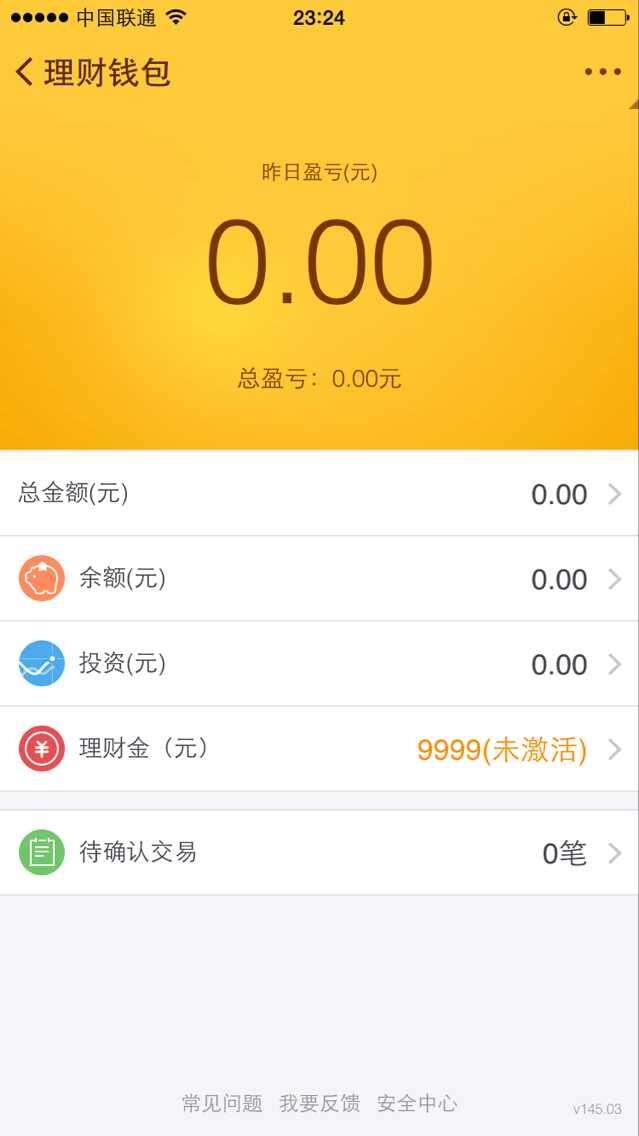 完成后再点击头像进入个人中心,点击“理财钱包”出现如下图所示: