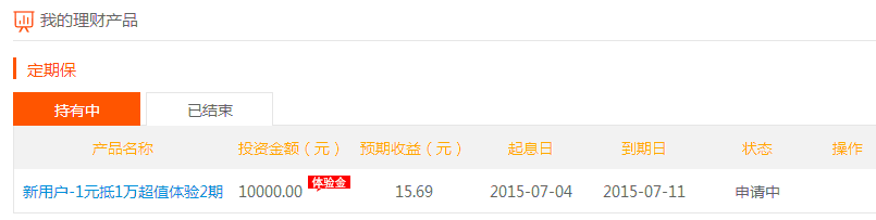 标签:理财 投资 体验金 甜橙理财 翼支付